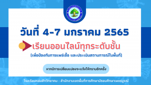ประกาศปรับการจัดการเรียนการสอน เป็นการเรียนออนไลน์ทุกระดับชั้น ในวันที่ 4-7 ม.ค. 2565