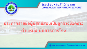 ประกาศโรงเรียนหล่มสักวิทยาคม เรื่อง รายชื่อผู้มีสิทธิ์สอบเป็นชั่วคราว ตำแหน่ง นักการภารโรงPosted on มกราคม 27, 2023 by adminann adminann ประกาศรายชื่อผู้มีสิทธิ์สอบ-นักการภารโรงดาวน์โหลด