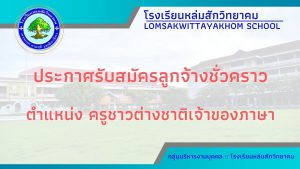 ประกาศโรงเรียนหล่มสักวิทยาคม เรื่อง การรับสมัครลูกจ้างชั่วคราว ตำแหน่งครูชาวต่างชาติเจ้าของภาษาPosted on มีนาคม 24, 2023 by adminann adminann ประกาศจ้างครูต่างชาติ-เจ้าของภาษาดาวน์โหลด