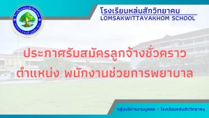ประกาศโรงเรียนหล่มสักวิทยาคม เรื่อง การรับสมัครลูกจ้างชั่วคราว ตำแหน่งพนักงานช่วยการพยาบาล
