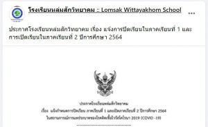 ประกาศโรงเรียนหล่มสักวิทยาคม เรื่อง แจ้งการปิดเรียนในภาคเรียนที่ 1 และ การเปิดเรียนในภาคเรียนที่ 2 ปีการศึกษา 2564